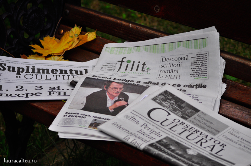 Cornelia Căliman, o prietenă din Iași, care a fost și voluntar FILIT, mi-a trimit și mie prin poștă ziarele și catalogul festivalului, așa că, la o săptămână după terminare, am putut să mă bucur și eu de bucățica mea de FILIT. De fapt, sunt convinsă că vom mai auzi vești de la Iași mult timp de acum înainte, când un interviu, când un articol, când un videoclip. Nu am apucat să citesc nici toate interviurile, nici să văd toate videoclipurile postate pe YouTube, și nici nu mă grăbesc s-o fac. Vreau să le savurez pe îndelete și să mă bucur cât mai mult de ele.