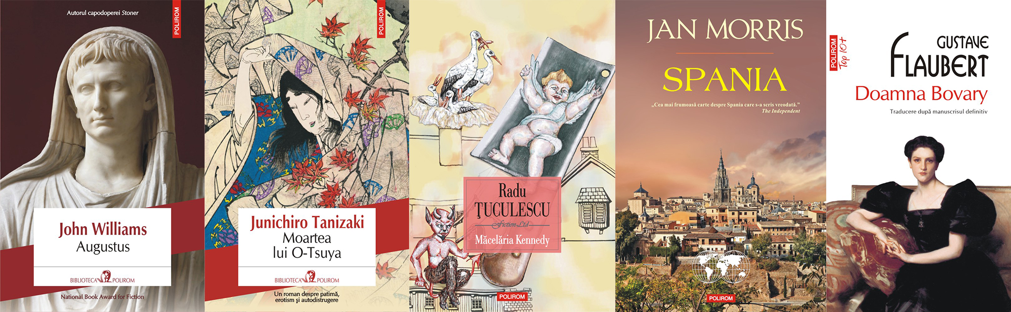 Augustus, de John Williams; Moartea lui O-Tsuya, de Junichiro Tanizaki; Măcelăria Kennedy, de Radu Țuculescu; Spania, de Jan Morris; Doamna Bovary, de Gustave Flaubert.