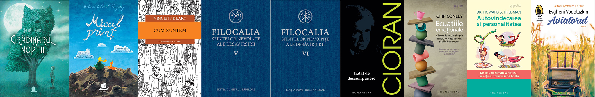 Grădinarul nopții, de Frații Fan; Micul prinț, de Antoine de Saint-Exupéry; Cum suntem. O psihologie a rutinei, de Vincent Deary; Filocalia V; Filocalia VI; Tratat de descompunere, de Emil Cioran; Ecuațiile emoționale. Câteva formule simple pentru o viață fericită și plină de succes, de Chip Conley; Autovindecarea și personalitatea. De ce unii rămân sănătoși, iar alții sunt învinși de boală, de Howard S. Friedman; Aviatorul, de Evgheni Vodolazkin.