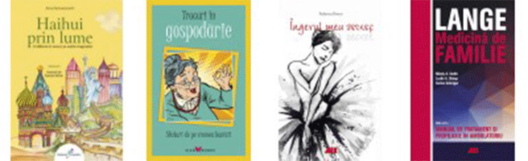 Haihui prin lume (Vol. II), de Anca Semacovschi; Sfaturi de pe vremea bunicii. Trucuri în gospodărie; Îngerul meu secret, de Federica Bosco; LANGE. Medicină de familie – Manual de tratament și profilaxie în ambulatoriu, de Mindy A. Smith , Leslie A. Shimp , Sarina Schrager.