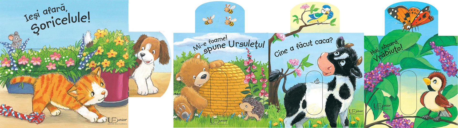 Ieși afară, Șoricelule!, de Antje Flad, Anna Taube; Mi-e foame! spune Ursulețul, de Antje Flad, Anna Taube; Cine a facut caca?, de Antje Flad, Anna Taube; Hai, zboară, Vrăbiuțo!, de Antje Flad, Anna Taube.