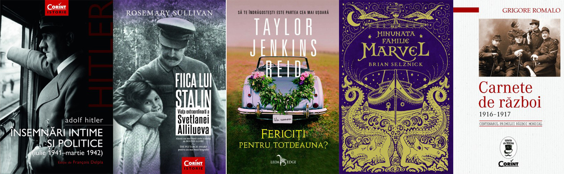 Adolf Hitler. Însemnări intime și politice (vol.1), de Adolf Hitler și François Delpla; Fiica lui Stalin, de Rosemary Sullivan; Tenis. Sportul inventat de diavol, de Adrian Feecău; Fericiți pentru totdeauna?, de Taylor Jenkins Reid; Minunata familie Marvel, de Brian Selznick; Carnete de război 1916-1917, de Grigore Romalo; Unește punct cu punct, de Adam Linley; Ceasul vrăjitoarelor (vol.3), de Sibéal Pounder.