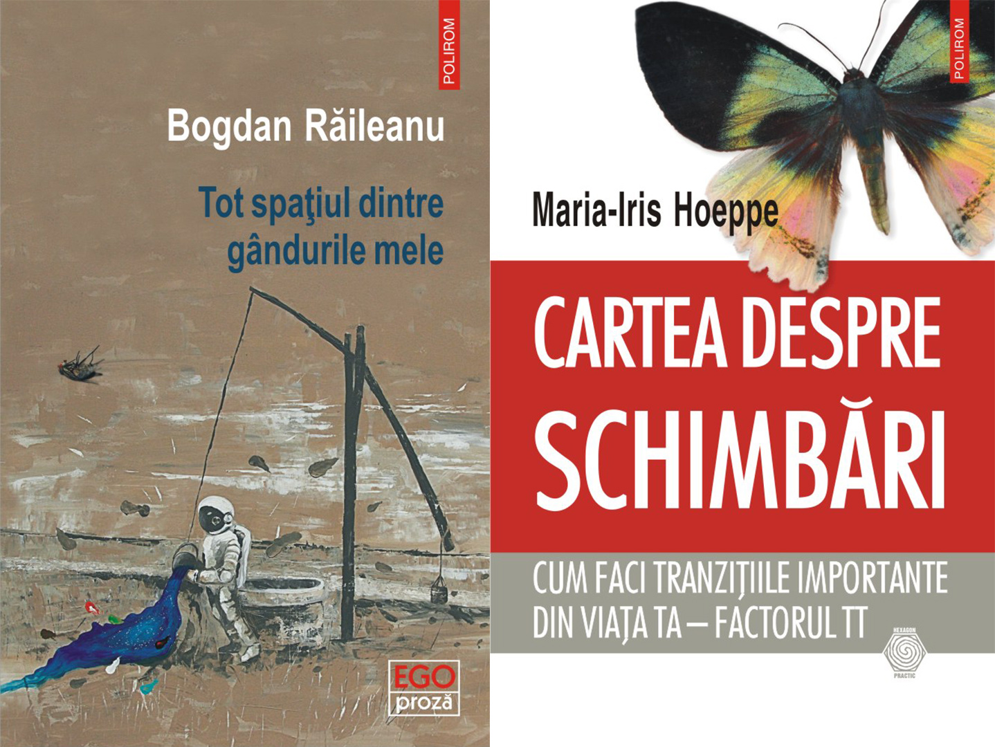 Tot spaţiul dintre gândurile mele, de Bogdan Răileanu; Cartea despre schimbări. Cum faci tranziţiile importante din viaţa ta - factorul TT, de Maria-Iris Hoeppe.