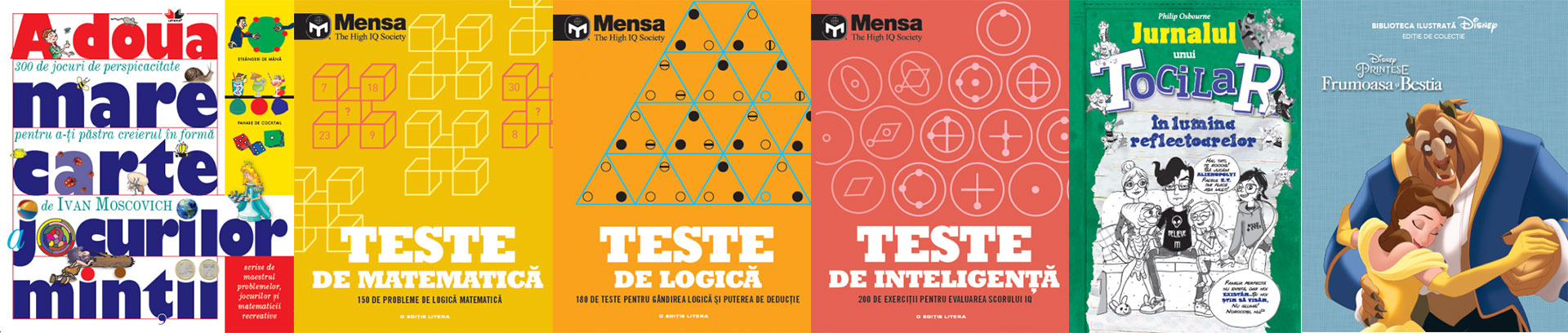 A doua mare carte a jocurilor minții, de Ivan Moscovich; Mensa. Teste de matematică. 150 de probleme de logică matematică; Mensa. Teste de logică. 180 de teste pentru gândirea logică și puterea de deducție; Mensa. Teste de inteligență. 200 de exerciții pentru evaluarea scorului IQ; Jurnalul unui tocilar. În lumina reflectoarelor, de Philip Osbourne; Frumoasa și Bestia. Biblioteca ilustrată, de Disney.