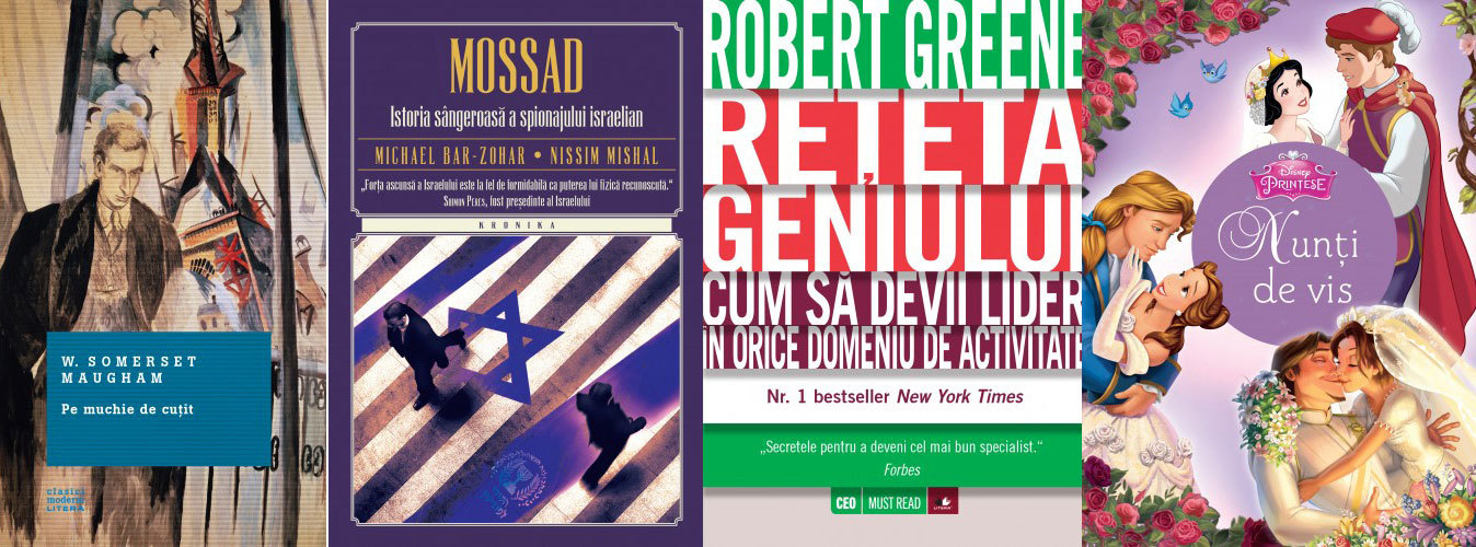 LITERA – Pe muchie de cuțit, de W. Somerset Maugham; Mossad. Istoria sângeroasă a spionajului israelian, de Michael Bar-Zohar; Rețeta geniului, de Robert Greene; Nunți de vis, ed. Disney.