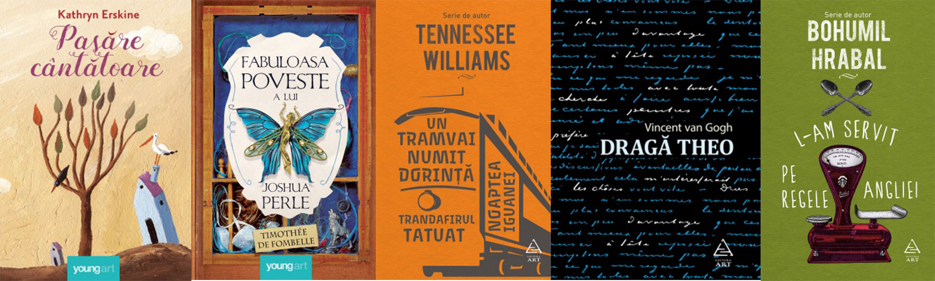 Pasăre cântătoare, de Kathryn Erskine; Fabuloasa poveste a lui Joshua Perle, de Timothée de Fombele; Un tramvai numit Dorință. Trandafirul tatuat. Noaptea iguanei, de Tennessee Williams; Dragă Theo, de Vincent van Gogh; L-am servit pe regele Angliei, de Bohumil Hrabal.