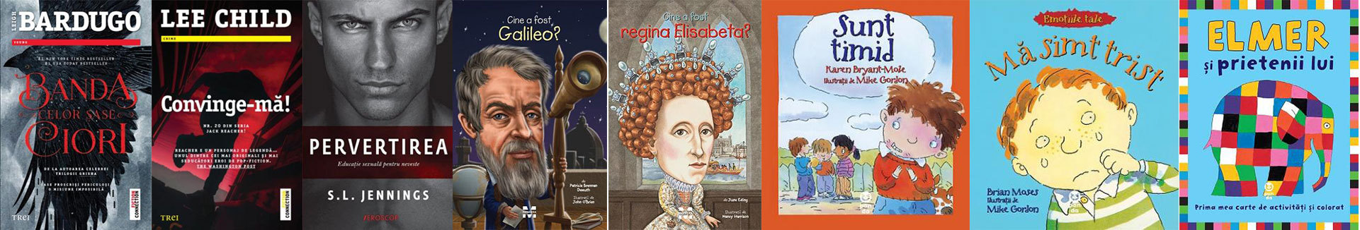 Banda celor șase ciori, de Leigh Bardugo; Convinge-mă!, de Lee Child; Pervertirea, de S.L. Jennings; Cine a fost Galileo?, de Patricia Brennan Demuth; Cine a fost regina Elisabeta?, de June Eding; Sunt timid (Emoțiile tale), de Karen Bryant Mole; Mă simt trist (Emoțiile tale), de Brian Moses; Elmer şi prietenii lui, de David McKee.