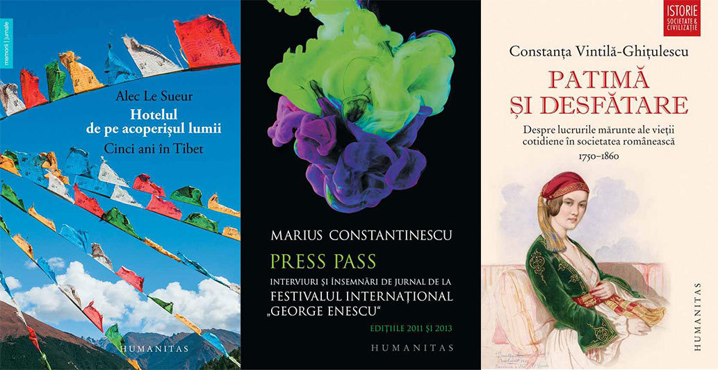 HUMANITAS – Hotelul de pe acoperișul lumii: Cinci ani în Tibet, de Alec Le Sueur; Press Pass: Interviuri și însemnări de jurnal de la Festivalul Internațional „George Enescu“ (edițiile 2011 și 2013), de Marius Constantinescu; Patimă și desfătare: Despre lucrurile mărunte ale vieții cotidiene în societatea românească (1750–1860), de Constanţa Vintilă-Ghiţulescu.