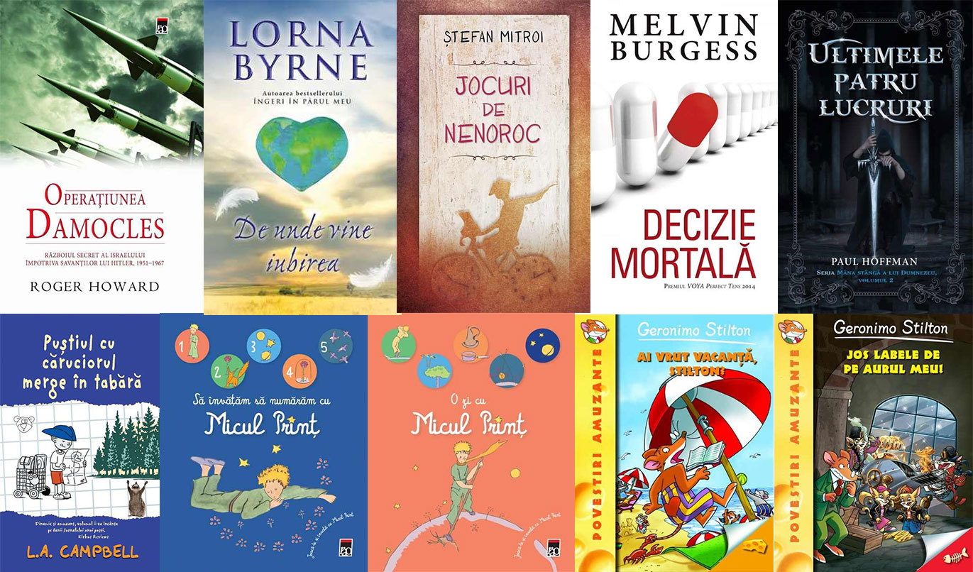 RAO – Operațiunea Damocles, de Roger Howard; Jocuri de nenoroc, de Ștefan Mitroi; De unde vine iubirea, de Lorna Byrne; Decizie mortală, de Melvin Burgess; Ultimele patru lucruri, de Paul Hoffman; Să învățăm să numărăm cu Micul Prinț; O zi cu Micul Prinț; Puștiul cu căruciorul merge în tabără, de L.A. Campbell; Ai vrut vacanță Stilton?, Geronimo Stilton (vol.7); Jos labele de pe aurul meu, Geronimo Stilton (vol.8); 30 de rețete delicioase cu Nutella, ed. Larousse.