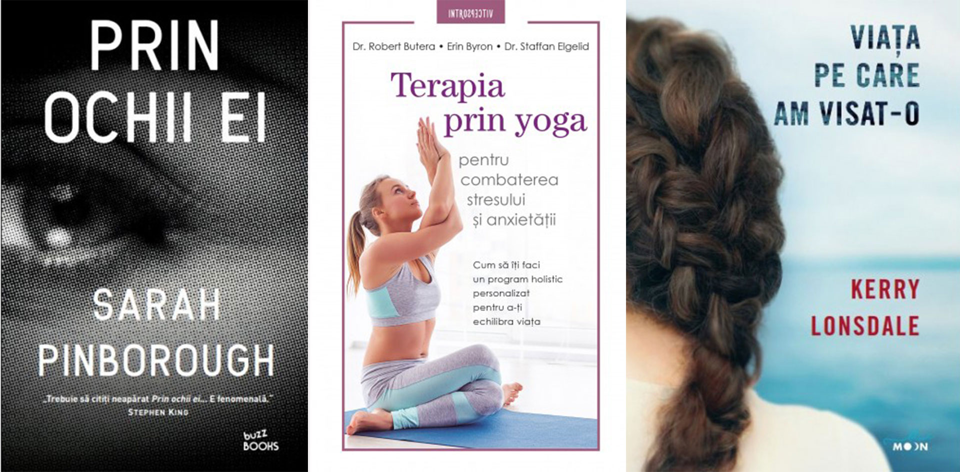 Prin ochii ei, de Sarah Pinborough; TAI-PAN, de James Clavell; Terapia prin yoga, de Dr. Robert Butera, Erin Byron, Dr. Staffan Elgelid; Viața pe care am visat-o, de Kerry Lonsdale; Prima mea carte de matematică, de Amanda Enright.