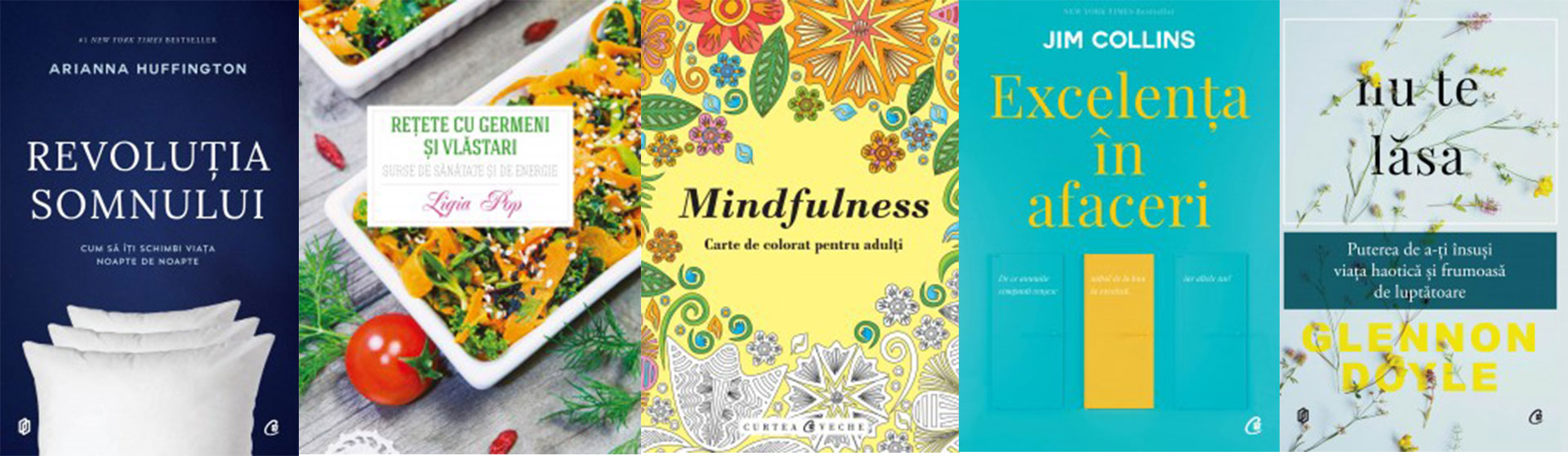 Jurnal 1934-1944. Editat si comentat de Jurgen Matthaus si Frank Bajohr, de Alfred Rosenberg; Revoluţia somnului. Cum să îţi schimbi viaţa noapte de noapte, de Arianna Huffington; Rețete cu germeni și vlăstari. Surse de sănătate și de energie, de Ligia Pop; Mindfulness. Carte de colorat pentru adulți; Liniște sufletească. Carte de colorat pentru adulți; Frumusețe interioară. Carte de colorat pentru adulți; Excelența în afaceri. De ce anumite companii reușesc saltul de la bun la excelent, iar altele nu?, de Jim Collins; Nu te lăsa. Puterea de a-ți însuși viața haotică și frumoasă de luptătoare, de Glennon Doyle.