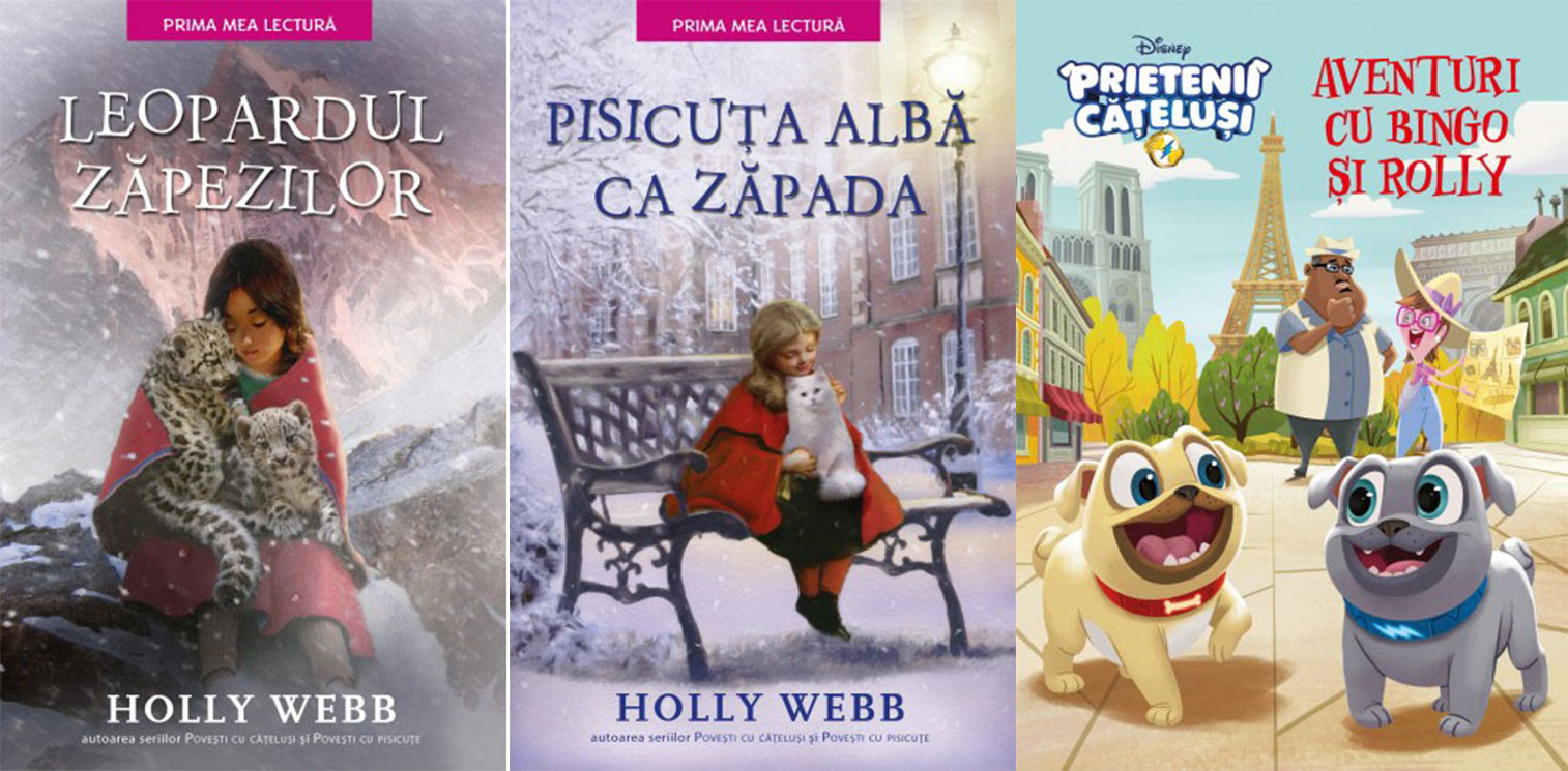 Leopardul zăpezilor, de Holly Webb; Pisicuța albă ca zăpada, de Sue Bentley; Prietenii cățeluși. Aventuri cu Bingo și Rolly. Povestea filmului, ed. Disney.