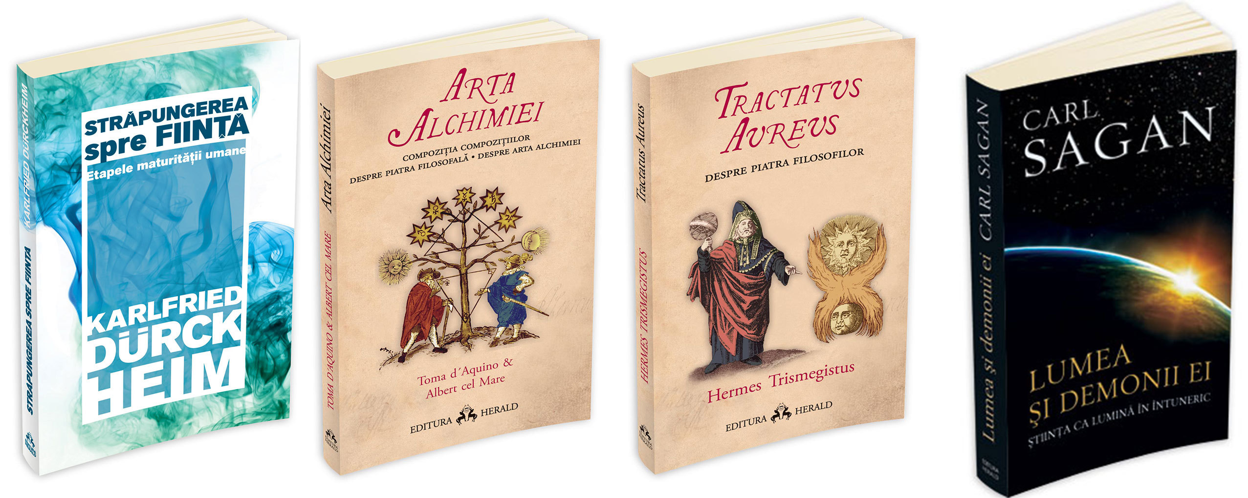 Străpungerea spre ființă. Etapele maturității umane, de Karlfried Graf Durckheim; Arta alchimiei (Compozitia Compozițiilor - Despre Piatra Filosofală - Despre Arta Alchimiei), de Albert Cel Mare, Toma D`Aquino; Tractatus Aureus - Tratatul de Aur al lui Hermes despre Piatra Filosofilor, de Hermes Trismegistos; Lumea și demonii ei: știința ca lumina în întuneric, de Carl Sagan.