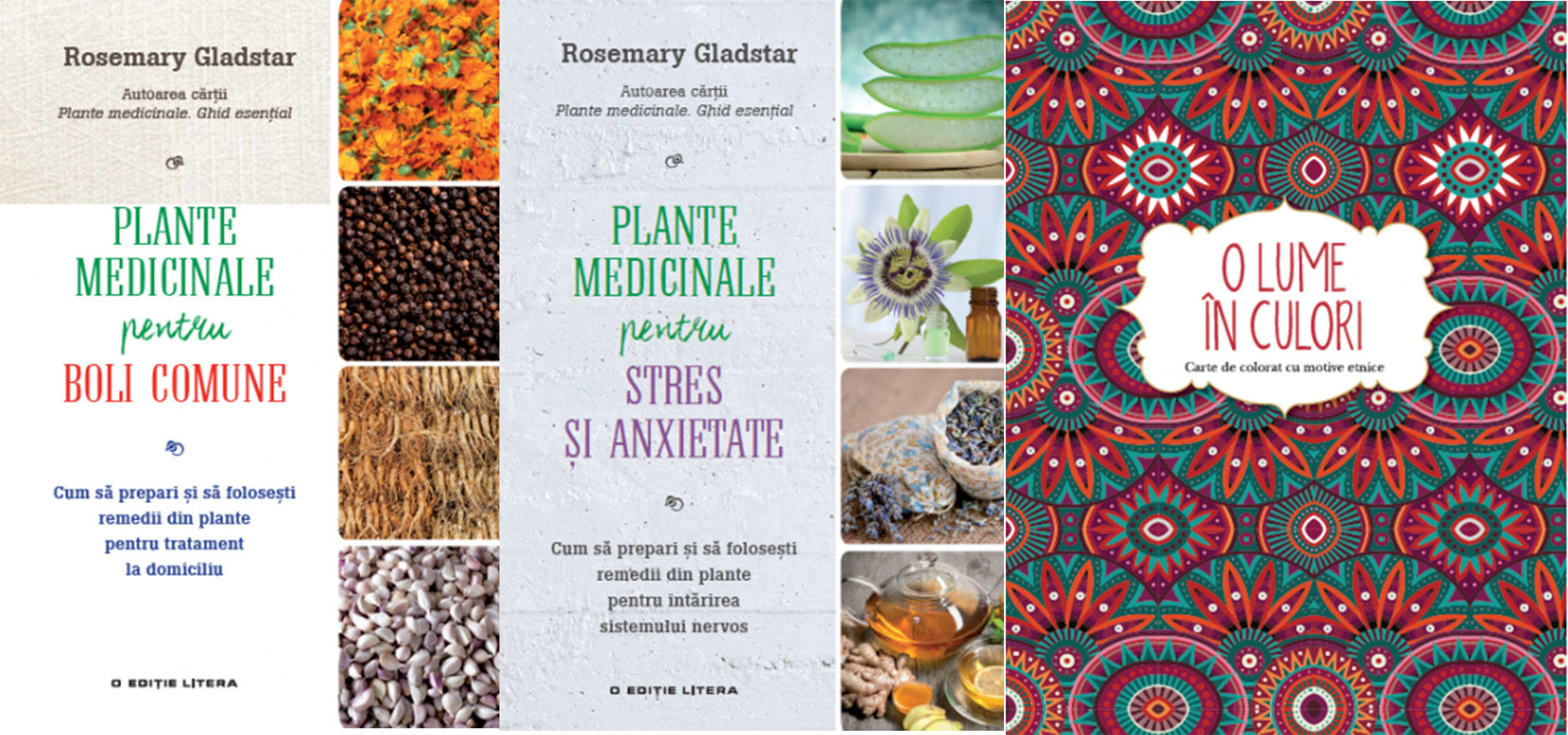 Plante medicinale pentru boli comune, de Rosemary Gladstar; Plante medicinale pentru stres și anxietate, de Rosemary Gladstar; O lume în culori.