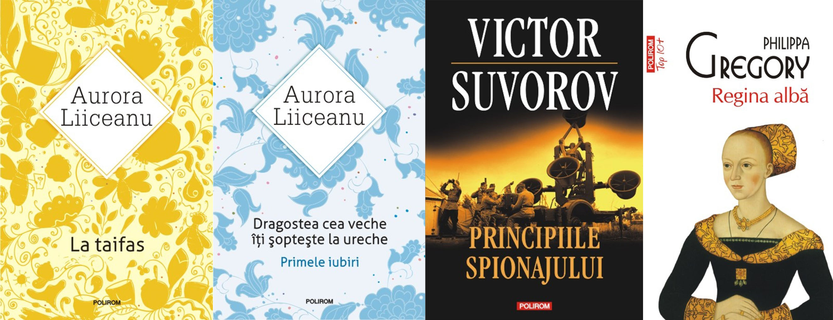 La taifas, de Aurora Liiceanu; Dragostea cea veche îți șoptește la ureche. Primele iubiri, de Aurora Liiceanu; Principiile spionajului, de Victor Suvorov; Regina albă, de Philippa Gregory.
