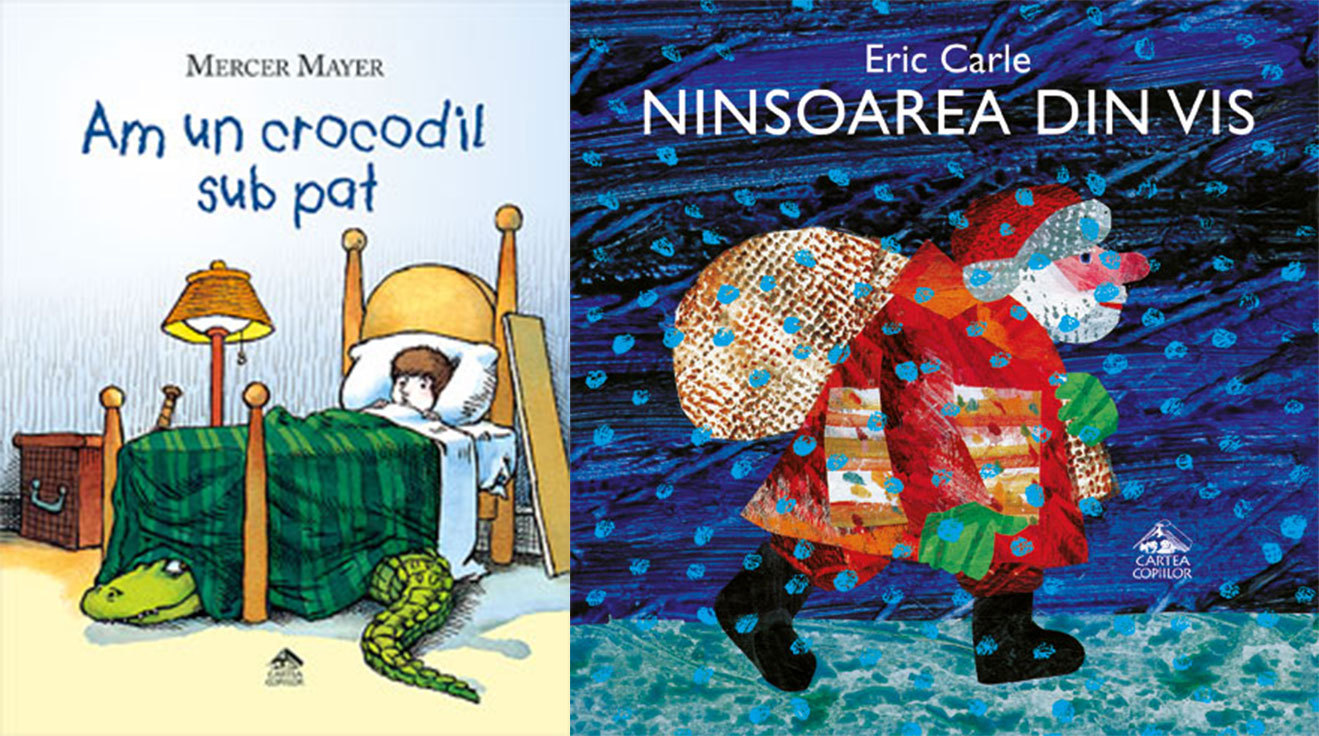 Am un crocodil sub pat, de Mercer Mayer; Ninsoarea din vis, de Eric Carle.
