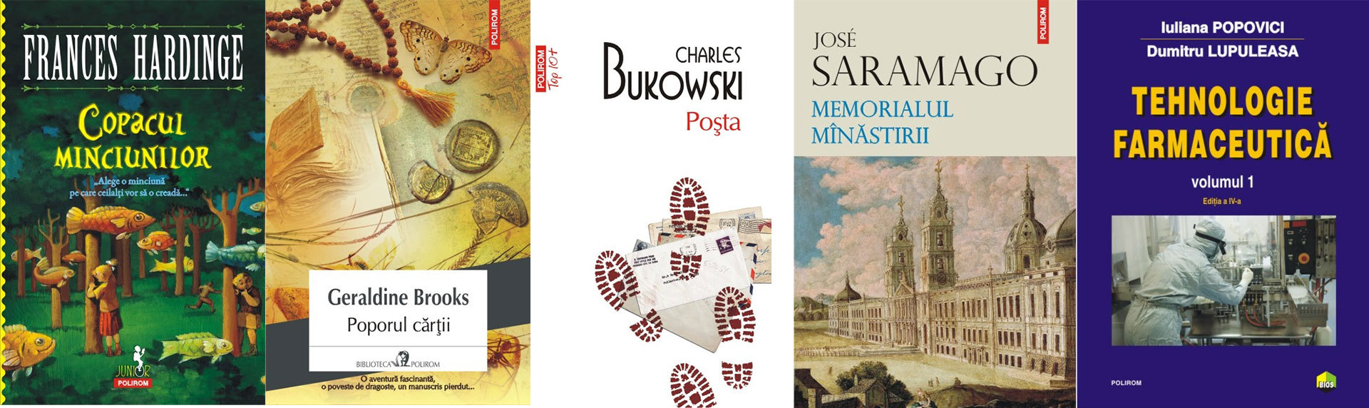 Copacul minciunilor, de Frances Hardinge; Poporul cărții, de Geraldine Brooks; Poșta (ediție de buzunar), de Charles Bukowski; Memorialul mînăstirii, de José Saramago; Tehnologie farmaceutică. Volumul I (ediția 2017), de Dumitru Lupuleasa, Iuliana Popovici.