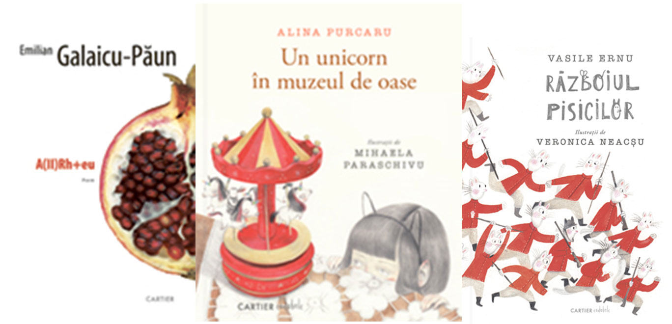A(II)Rh+eu / Apa.3D, de Emilian Galaicu-Păun; Un unicorn în muzeul de oase, de Alina Purcaru; Războiul pisicilor, de Vasile Ernu.