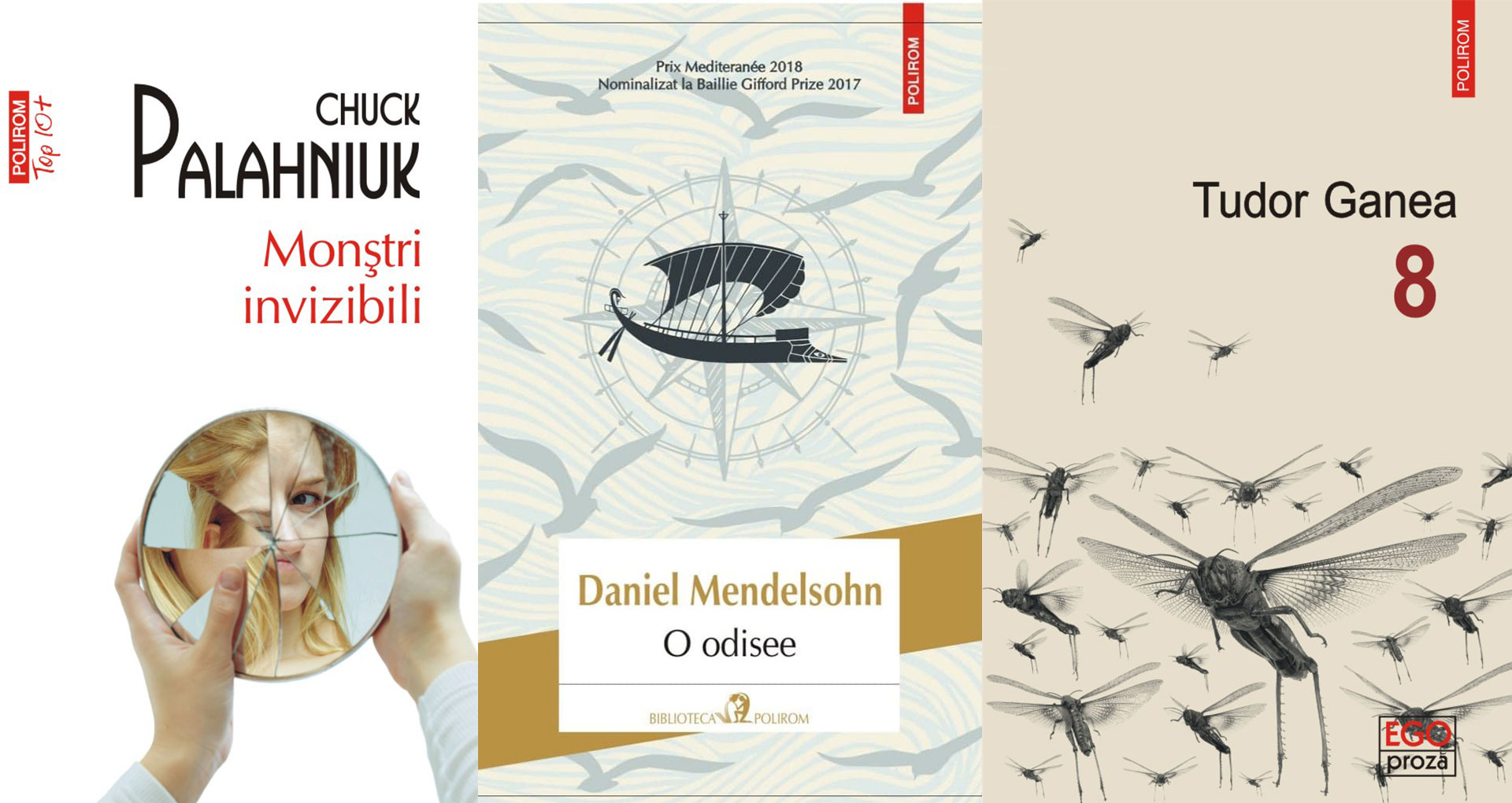 Monștri invizibili, de Chuck Palahniuk; O odisee, de Daniel Mendelsohn; 8, de Tudor Ganea.