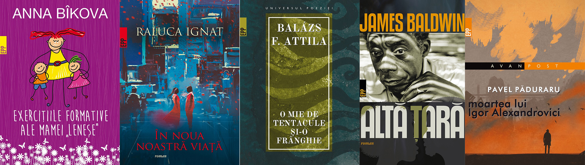 Exerciţiile formative ale „mamei leneșe”, de Anna Bîkova; Pete de culoare. Caiet de dezvoltare. Desenăm cu copiii – 3-5 ani, de Anna Bîkova; Pete de culoare. Caiet de dezvoltare. Desenăm cu copiii – 5-8 ani, de Anna Bîkova; Prea mulți zei pentru un deșert, de Doina Roman; În noua noastră viaţă, de Raluca Ignat; Moartea lui Igor Alexandrovici, de Pavel Păduraru; Calm! Calea originală spre o viaţă mai bună, de Sandy Newbigging; Altă ţară, de James Baldwin; Jurnalul meu trăsnit – în culori!, de Keri Smith; Biroul de investigații nr. 2. Operaţiunea Apus de soare, de Jørn Lier Horst; Hans Jørgen Sandnes; O mie de tentacule şi-o frânghie, de Balázs F. Attila; Să trăim sănătos fără toxine. Ghid fundamental. Alimente și plante naturale pentru regenerarea celulară completă, de Robert Morse; Dacă vrei să găseşti fericirea! Manual de psihologia şi psihoterapia comunicării, de Mihail Litvak; Dicționar praxiologic de pedagogie, vol. III (I-L), coord. Mușata-Dacia Bocoș.