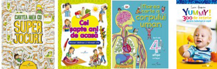 Cartea mea cu superjocuri; Cei șapte ani de acasă; Marea carte a corpului uman; YUMMY! 300 de rețete pentru bebeluși și copii, de Laura Adamache.