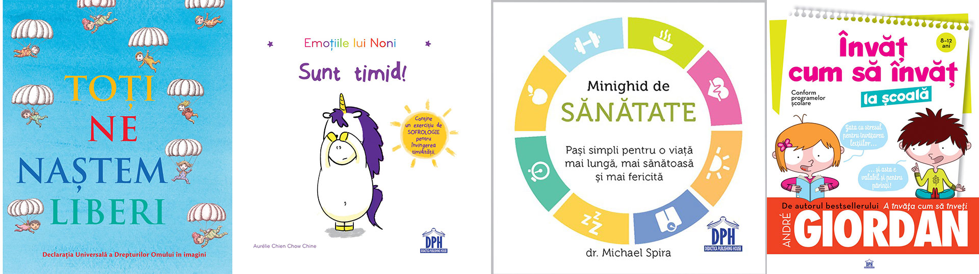 Toți ne naștem liberi; Emoțiile lui Noni. Sunt timid, de Aurélie Chien Chow Chine; Emoțiile lui Noni. Sunt invidios, de Aurélie Chien Chow Chine; Minighid de sănătate, de dr. Michael Spira; Învăț cum să învăț la școală, de André Giordan.