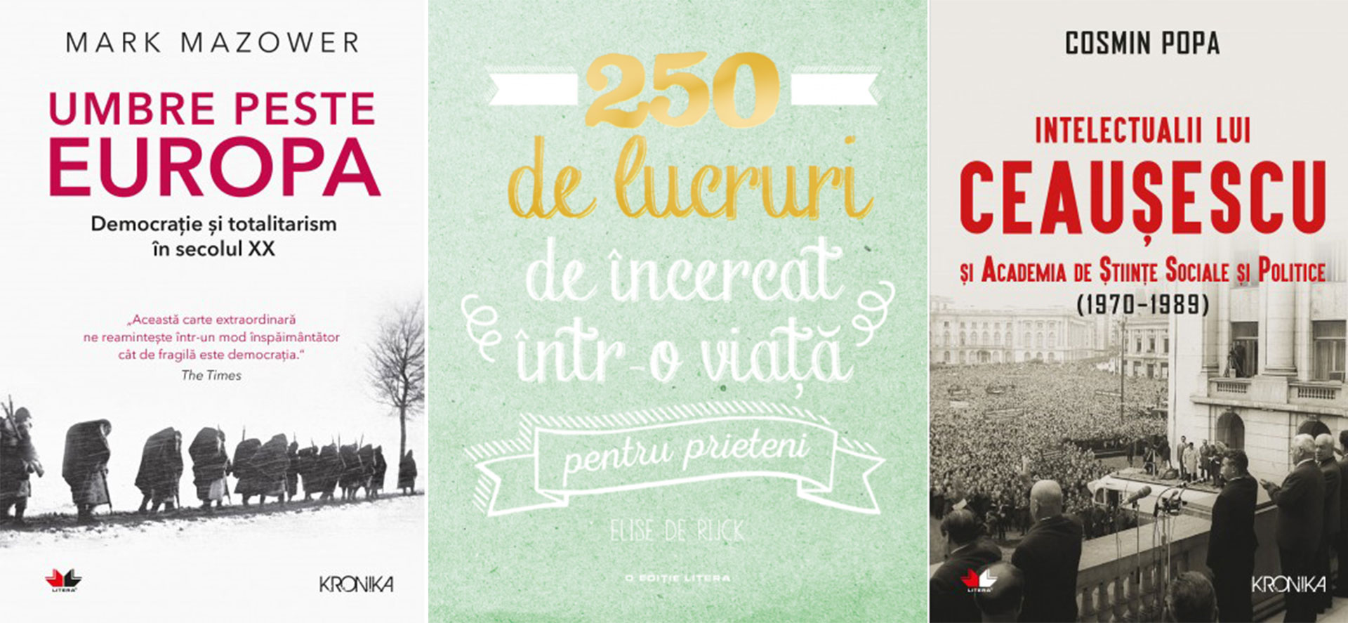 Umbre peste Europa. Democrație și totalitarism în secolul XX, de Mark Mazower; 250 de lucruri de încercat într-o viață pentru prieteni, de Elise de Rijck; Intelectualii lui Ceaușescu și Academia de Științe Sociale și Politice (1970-1989), de Cosmin Popa.