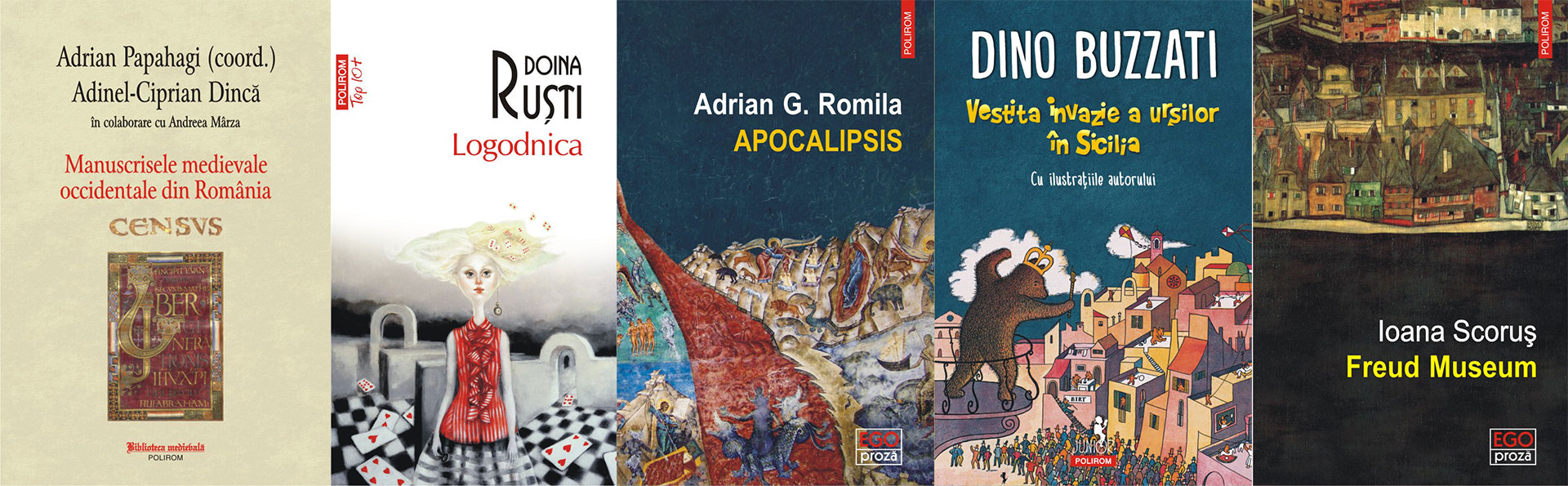 Manuscrisele medievale occidentale din România. Census, de Adinel-Ciprian Dincă, Andreea Mârza, coord. Adrian Papahagi; Logodnica, de Doina Ruști; Apocalipsis, de Adrian G. Romila; Vestita invazie a urșilor în Sicilia, de Dino Buzzati; Psihologia învățării. Cum învață copiii și adulții?, de Georgeta Pânișoară; Freud Museum, de Ioana Scoruș.