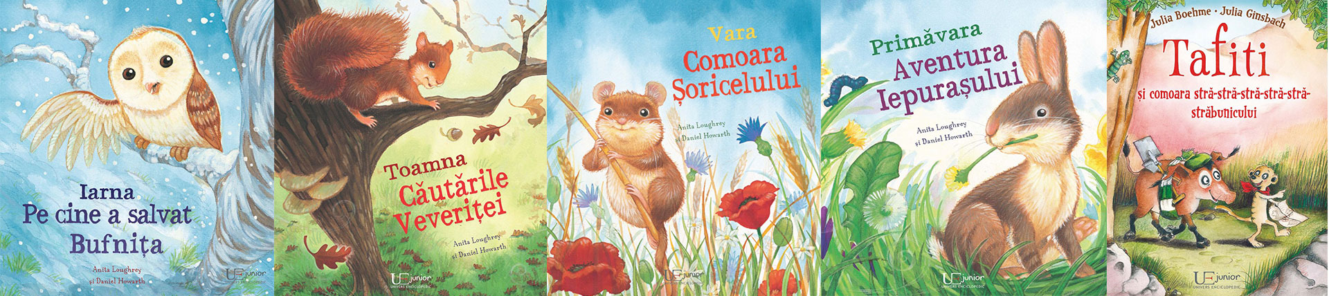 Iarna. Pe cine a salvat Bufnița, de Anita Loughrey și Daniel Howarth; Toamna. Căutările Veveriței, de Anita Loughrey și Daniel Howarth; Vara. Comoara Șoricelului, de Anita Loughrey și Daniel Howarth; Primavara. Aventura Iepurașului, Anita Loughrey și Daniel Howarth; Tafiti și comoara stră-stră-stră-stră-stră-străbunicului, de Julia Boehme, Julia Ginsbach; Povești de 3 minute cu dragoni, Stefanie Dahle, Milena Baisch.