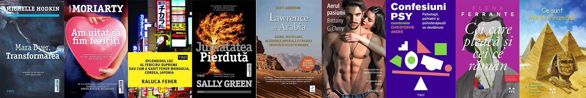 Mara Dyer. Transformarea, de Michelle Hodkin; Am uitat să fim fericiți, de Liane Moriarty; Splendidul loc al fericirii supreme sau cum a găsit Feher Mongolia, Coreea și Japonia, de Raluca Feher; Jumătatea pierdută, de Sally Green; Lawrence în Arabia, de Scott Anderson; Aerul pasiunii, de Brittainy C. Cherry; Confesiuni PSY. Psihologii, psihiatrii și psihoterapeuții se destăinuie, coord. Christophe André; Cei care pleacă şi cei ce rămân, de Elena Ferrante; Vieţile artiştilor, vieţile arhitecţilor, de Hans Ulrich Obrist; Ce sunt Marile Piramide?, de Thomas Hoobler, Dorothy Hoobler.