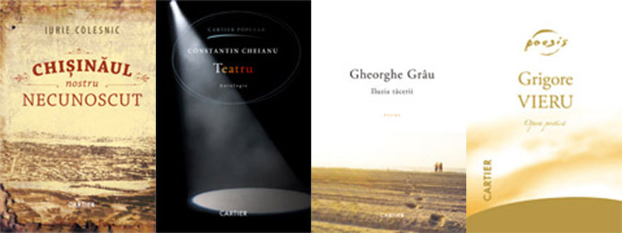CARTIER – Chișinăul nostru necunoscut, de Iurie Colesnic; Teatru, de Constantin Cheianu; Iluzia tăcerii, de Gheorghe Grâu; Opera poetică, de Grigore Vieru.