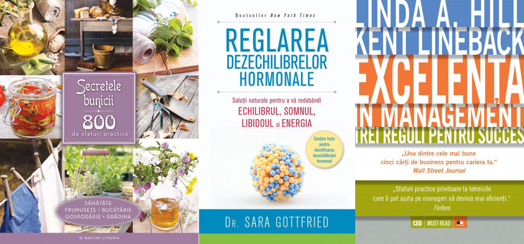LITERA – Secretele bunicii. 800 de sfaturi practice; Reglarea dezechilibrelor hormonale, dr. Sara Gottfried; Excelența în management, de Linda A. Hill.
