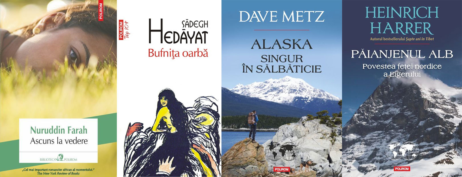 POLIROM – Ascuns la vedere, de Nuruddin Farah; Alaska. Singur în sălbăticie, de Dave Metz; Păianjenul alb. Povestea fetei nordice a Eigerului, de Heinrich Harrer; Bufnița oarbă, de Sadegh Hedayat; Manual de psihologia dezvoltării. O abordare psihodinamică, de Florinda Golu.