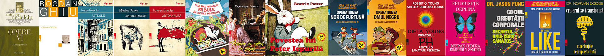 Opere VI. Zodia scafandrului, de Mircea Nedelciu; Opera poetică, de Bogdan Ghiu; Uite ce e, de Ioana Geacăr; Aripi sub asfalt, de Marius Ganea; Autoanaliză, de Lorena Enache; Cele mai frumoase fabule în benzi desenate, de Chris Duffy; Femeia cu colier de velur, de Alexadre Dumas; Povestea lui Peter Iepurilă, de Beatrix Potter; Biroul de investigații nr. 2. Operaţiunea Nor de Furtună, de Jørn Lier Horst; Hans Jørgen Sandnes; Biroul de investigații nr. 2. Operaţiunea Omul Negru, de de Jørn Lier Horst; Hans Jørgen Sandnes; Dieta Young. Miracolul pentru o sănătate perfectă, de Robert O. Young, Shelley Redford Young; Frumuseţe deplină. Cum să te transformi din interior, de Deepak Chopra, Kymberly Snyder; Codul greutăţii corporale. Secretul unui corp sănătos, de Jason Fung; Butonul LIKE. Cum să îi câștigi pe ceilalți, de Marvin Karlins; Jack Schafer; Creierul se transformă. Experienţele neuroplasticităţii, de Norman Doidge.
