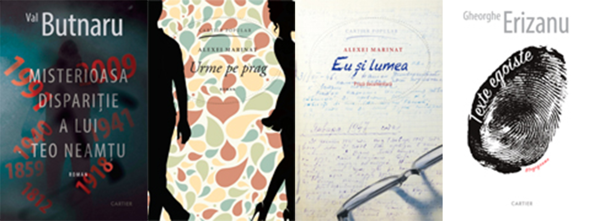 Misterioasa dispariție a lui Teo Neamțu, de Val Butnaru; Urme pe prag, de Alexei Marinat; Eu și lumea, de Alexei Marinat; Texte egoiste. Blogograme, de Gheorghe Erizanu.