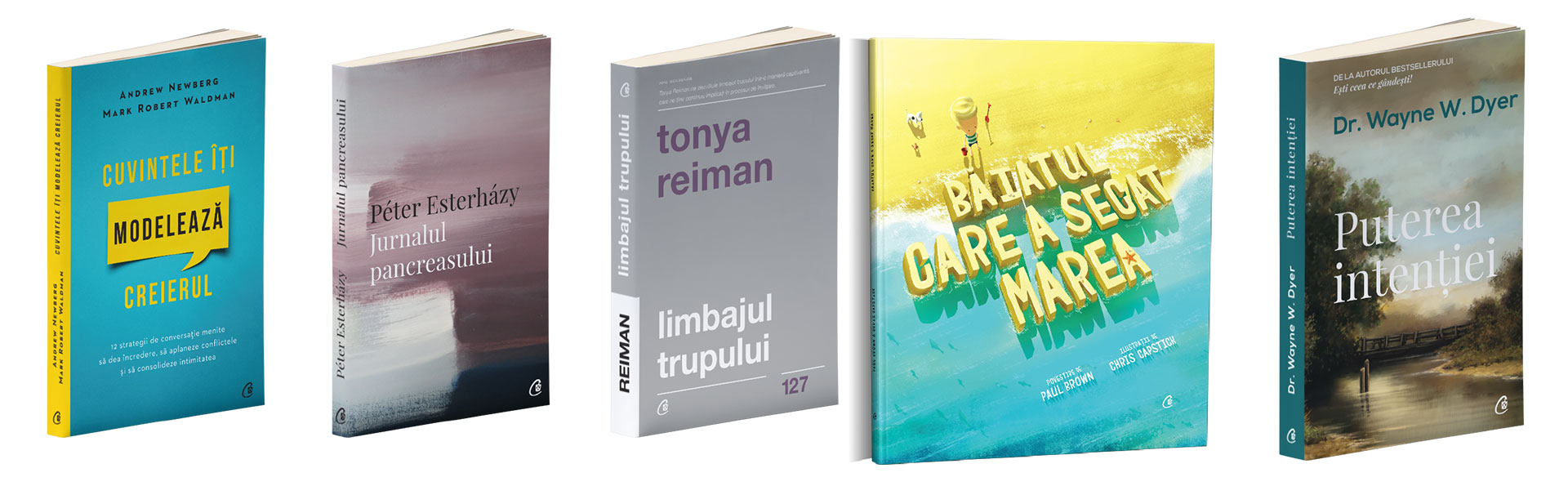 Pregătit pentru succes, de Jeff Keller; Cuvintele îți modelează creierul, de Mark Robert Waldman Andrew Newberg, Mark Robert Waldman; Jurnalul pancreasului, de Péter Esterházy; Limbajul trupului, de Tonya Reiman; Băiatul care a secat marea, de Paul Brown; Mai mult ketchup, vă rog!, de Adam Bestwick; Robot, stop!, de Adam Bestwick; Puterea intenţiei, de Dr. Wayne W. Dyer.