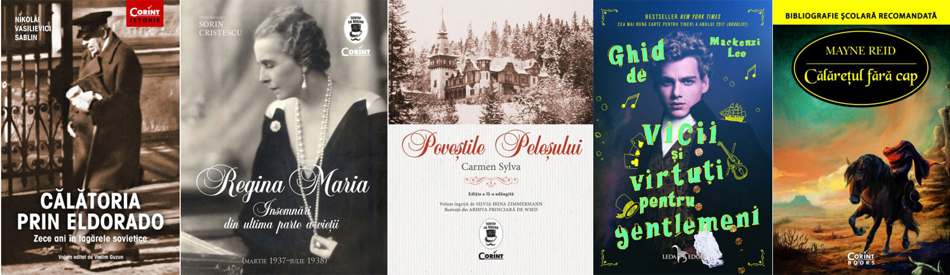 Călătoria prin Eldorado. Zece ani în lagărele sovietice, de Nikolai Vasilievici Sablin; Regina Maria - Însemnări din ultima parte a vieții, de Sorin Cristescu; Poveştile Peleşului, de Carmen Sylva; Ghid de vicii și virtuți pentru gentlemeni, de Mackenzi Lee; Călărețul fără cap, de Mayne Reid; Erori în folosirea semnelor de punctuație și de ortografie în limbajul cotidian, de Ilie-Ștefan Rădulescu.