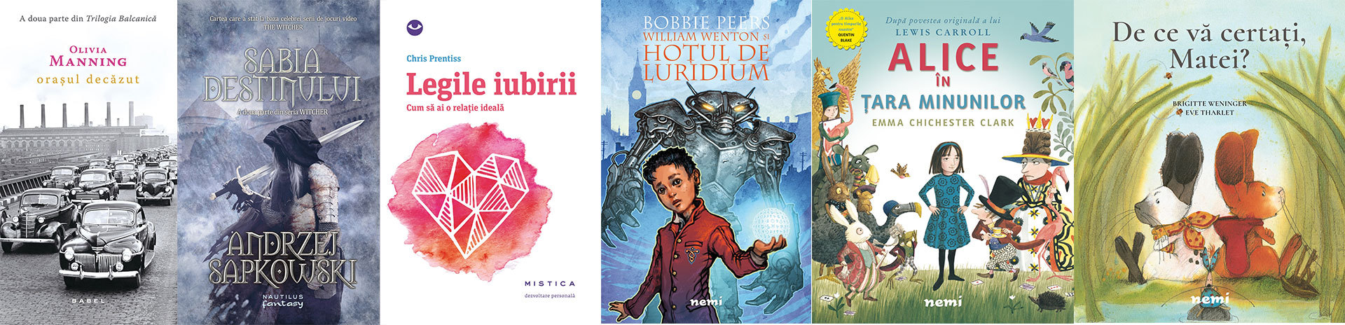 Orașul decăzut (Trilogia balcanică, partea a II-a), de Olivia Manning; Sabia destinului (Seria „Witcher”, partea a II-a), de Andrzej Sapkowski; Legile iubirii. Cum să ai o relație ideală, de Chris Prentiss; William Wenton și hoțul de luridium, de Bobbie Peers; Alice în Țara Minunilor, de Emma Chichester Clark; De ce vă certați, Matei?, de Brigitte Weninger.
