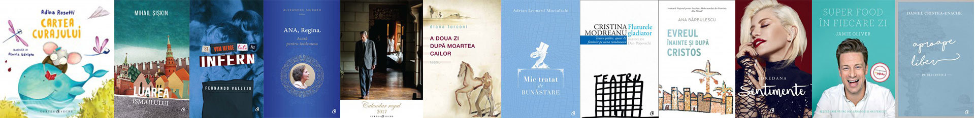 Cartea curajului, de Adina Rosetti; Luarea Ismailului, de Mihail Șișkin; Și vom merge cu toți în infern, de Fernando Vallejo; Ana, Regina. Acasă pentru totdeauna, ed. Alexandru Muraru; Calendar regal 2017, ed. Principele Radu al României; A doua zi după moartea cailor, de Diana Turconi; Mic tratat de bunăstare, de Adrian Leonard Mociulschi; Fluturele gladiator, de Cristina Modreanu; Evreul înainte și după Cristos, de Ana Barbulescu; Sentimente, de Loredana; Super Food în fiecare zi. Rețete care vă fac mai sănătoși și mai fericiți, de Jamie Oliver; Aproape liber. Publicistică, de Daniel Cristea Enache.