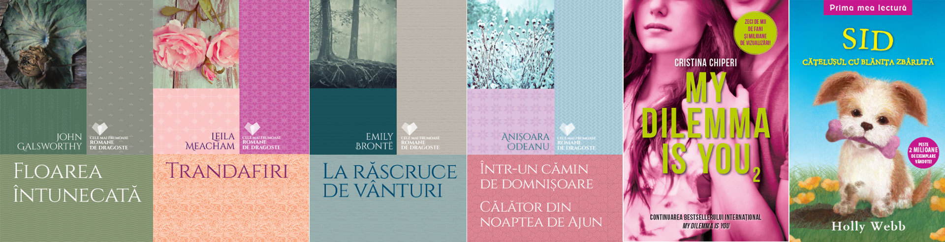 Floarea întunecată, de John Galsworthy; Trandafiri, de Leila Meacham; La răscruce de vânturi, de Emily Brontë; Într-un cămin de domnișoare. Călător din noaptea de Ajun, de Anișoara Odeanu; My dilemma is you (volumul 2), de Cristina Chiperi; Sid, cațelușul cu blaniță zbârlită, de Holly Webb.