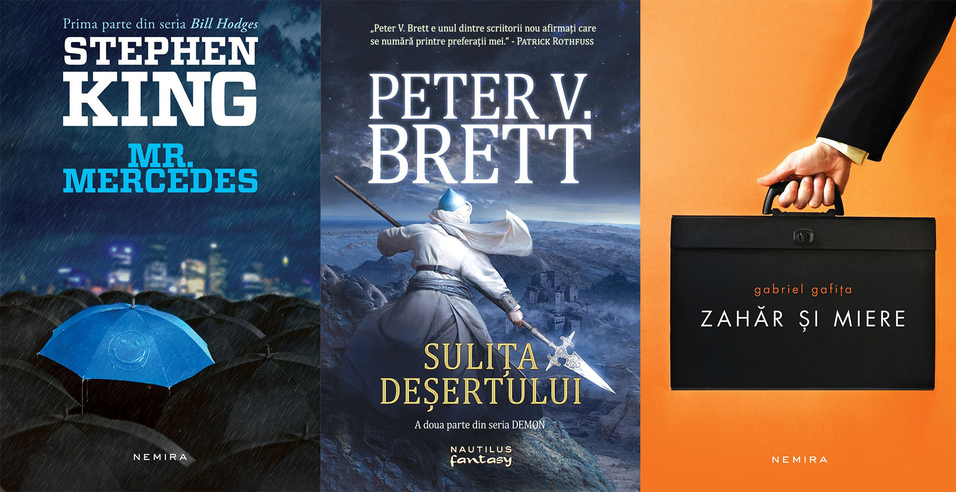 NEMIRA – Mr. Mercedes, de Stephen King; Sulița deșertului (Seria Demon II), de Peter V. Brett; Zahăr și miere, de Gabriel Gafița.
