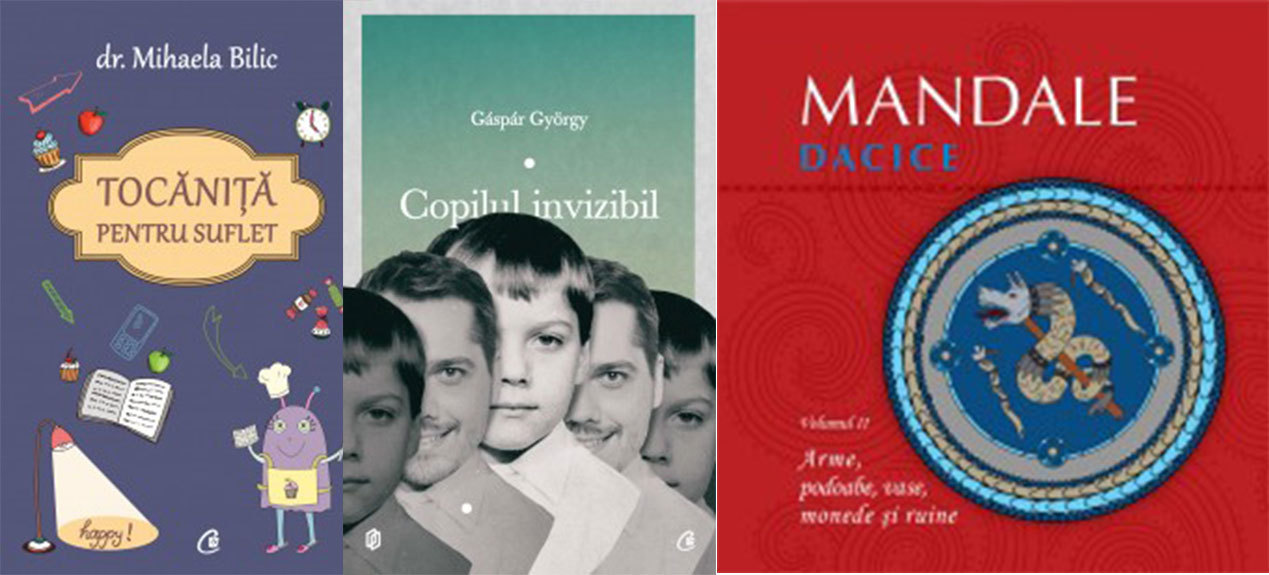 Tocăniță pentru suflet, de dr. Mihaela Bilic; Copilul invizibil, de Gáspár György; Mandale dacice. volumul II. Arme, podoabe, vase, monede și ruine, de Mihai Ionuţ Grǎjdeanu si Mǎdǎlina Corina Diaconu.