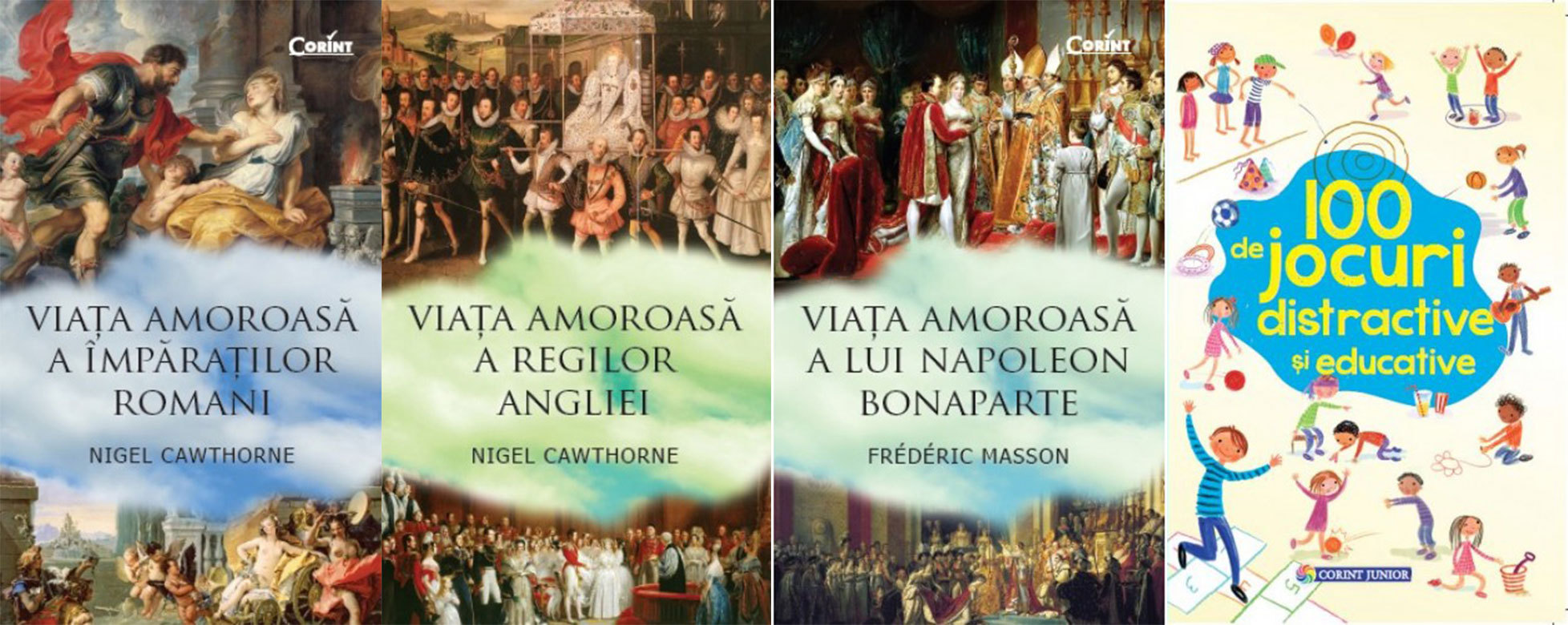 Viaţa amoroasă a împăraţilor romani, de Nigel Cawthorne; Viaţa amoroasă a regilor Angliei, de Nigel Cawthorne; Viaţa amoroasă a lui Napoleon Bonaparte, de Frédérick Masson; 100 de jocuri distractive şi educative, de Rebecca Gilpin.