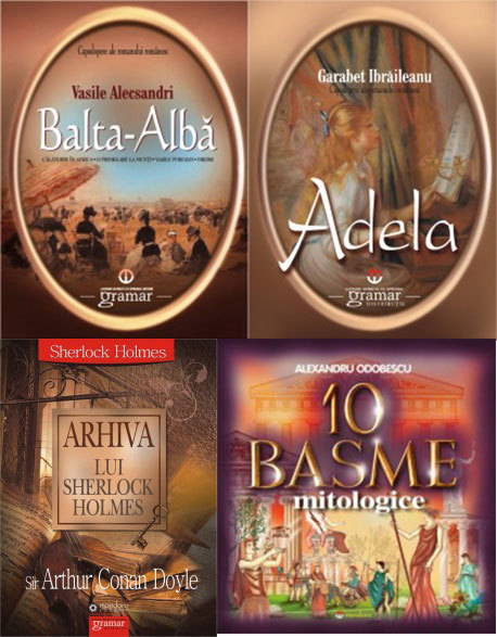 GRAMAR – Balta Albă, de Vasile Alecsandri; 10 basme mitologice, de Alexandru Odobescu; Adela, de Garabet Ibraileanu; Arhiva lui Sherlock Holmes, de Arthur Conan Doyle.