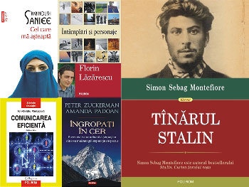 POLIROM – Comunicarea eficientă (ediția a IV-a, revăzută și adăugită), de Ion-Ovidiu Pânișoară; Întâmplări și personaje, de Florin Lăzărescu; Cel care mă așteaptă, de Parinoush Saniee (ediție Top10+), Îngropați în cer: Povestea extraordinară a șerpașilor din cea mai neagră expediție de pe K2, de Peter Zuckerman, Amanda Padoan; Tânărul Stalin, de Simon Sebag Montefiore.