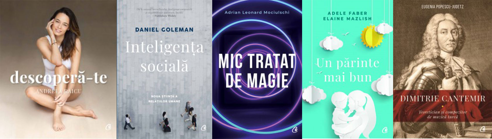 Descoperă-te, de Andreea Raicu; Inteligenţa socială. Noua ştiinţă a relaţiilor umane, de Daniel Goleman; Mic tratat de magie, de Adrian Leonard Mociulschi; Un părinte mai bun, de Adele Faber și Elaine Mazlish; Dimitrie Cantemir. Teoretician și compozitor de muzică turcă, de Eugenia Popescu - Judetz.