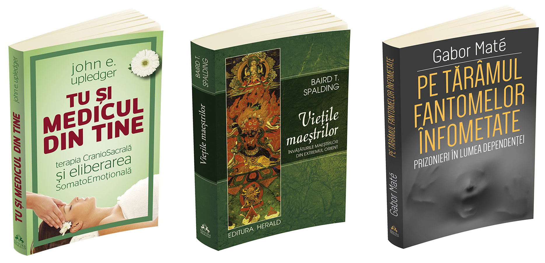 Tu și medicul din tine. Terapia CranioSacrală și Eliberarea SomatoEmoțională, de John E. Upledger; Viețile Maeștrilor. Învățăturile maeștrilor din Extremul Orient, de Baird Spalding; Pe tărâmul fantomelor înfometate. Prizonier în lumea dependenței, de Peter A. Levine, Gabor Mate.