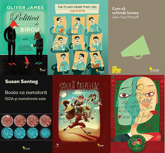 VELLANT – Politică de birou, de Oliver James, Cum îți poate schimba Proust viața, de inepuizabilul Alain de Botton, Cum să schimbi lumea, de Jean-Paul Flintoff, Boala ca metaforă: SIDA şi metaforele sale, de Susan Sontag, și două volume ilustrate de Vali Petridean: Dănilă Prepeleac de Ion Creagă și 16 poezii de iubire pe care mi le-aş fi scris mie dacă aş fi fost tu, un nou volum de poezii semnat Iv cel Naiv.