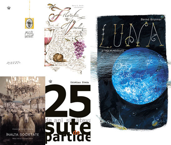 BAROQUE BOOKS&ARTS – Micul infinit, de Dominique Loreau; Luna și fața ei nevăzută, de Bernd Brunner; Filozofia vinului, coord. Barry C. Smith; Înalta societate: Dolce vita nu cunoaște sfârșit, de Alexander von Schönburg (ediția a II-a); 25 de ani de democraţie şi câteva sute de partide, de Cristian Preda.