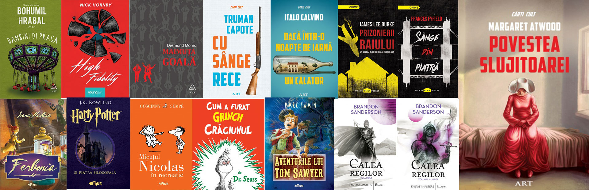 ART – Bambini di Praga, de Bohumil Hrabal; Ferbonia, de Ioana Nicolaie; Harry Potter și piatra filosofală, de J.K. Rowling; High Fidelity, de Nick Hornby; Micuțul Nicolas în recreație, de René Goscinny, Jean-Jacques Sempé; Maimuţa goală, de Desmond Morris; Cu sânge rece, de Truman Capote; Dacă într-o noapte de iarnă un călător, de Italo Calvino; Povestea slujitoarei, de Margaret Atwood; Calea regilor (vol. 1), de Brandon Sanderson; Calea regilor (vol. 2), de Brandon Sanderson; Prizonierii raiului, de James Lee Burke; Sânge de piatră, de Frances Fyfield; Cum a furat Grinch Crăciunul, de Dr. Seuss; Aventurile lui Tom Sawyer, de Mark Twain.